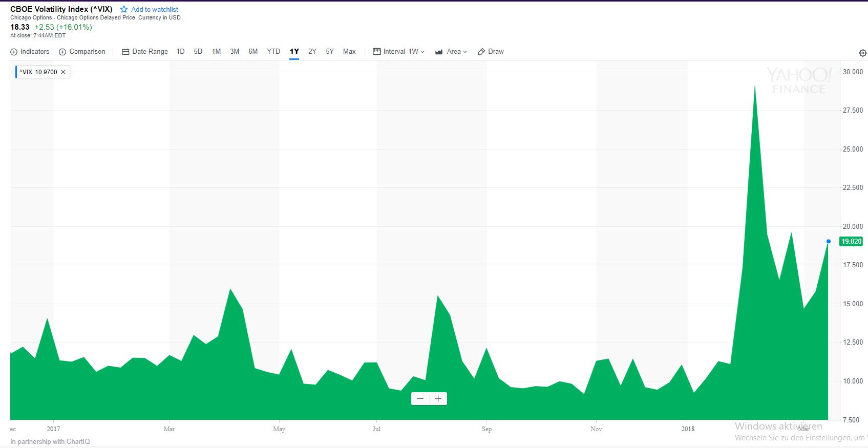 In der folgenden Grafik ist der VIX Anstieg in diesem Jahr, speziell Februar/März, sehr gut zu erkennen.