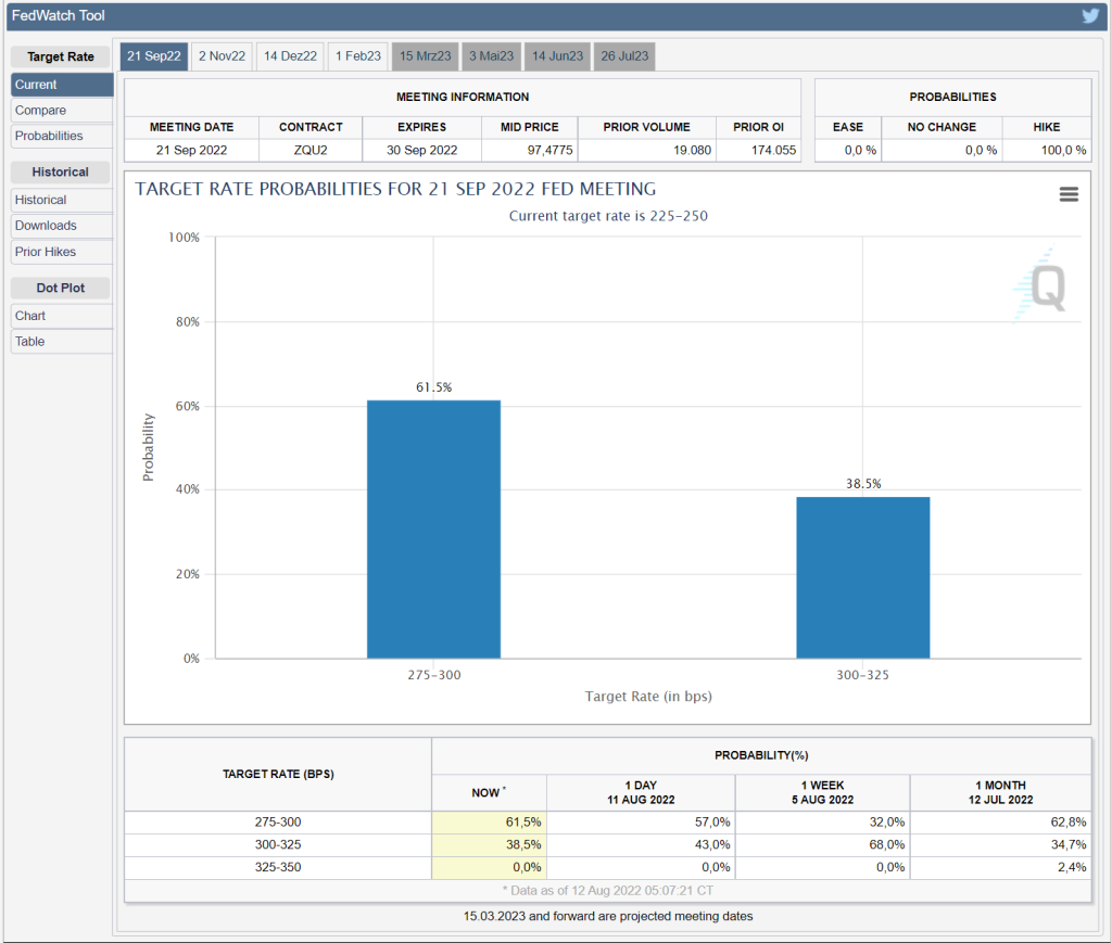 Im Anschluss an die Zahlen kehrten sich auch die Wahrscheinlichkeiten bzgl. der Höhe der Zinserhöhung im September um.