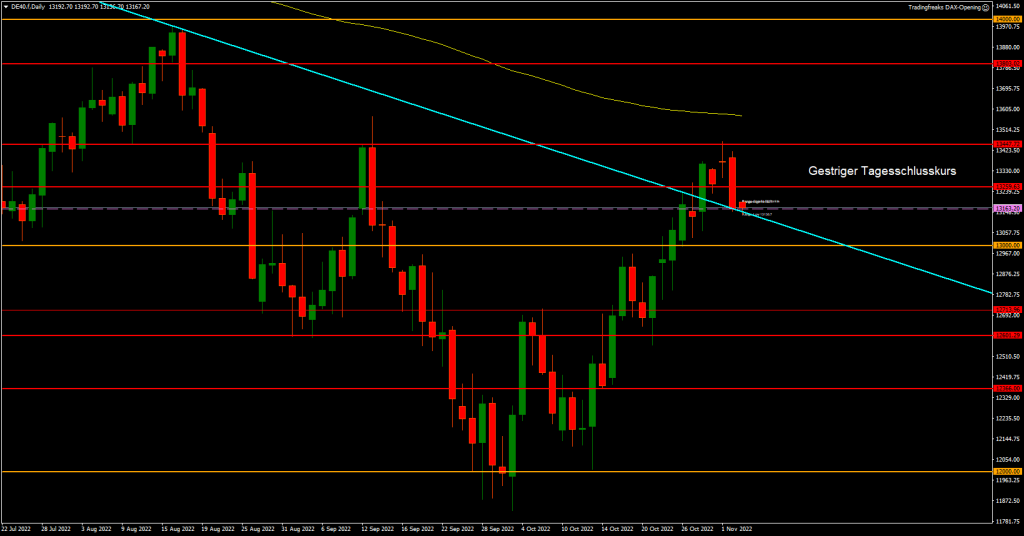 Unterstützungen nach unten: 13.100; 13.050; 13.000; 12.950; 12.900; 12.850; 12.800
