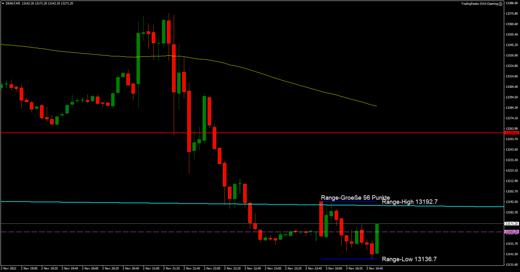 Die Handelsspanne im DAX beträgt in der letzten Stunde bislang 56 Punkte.