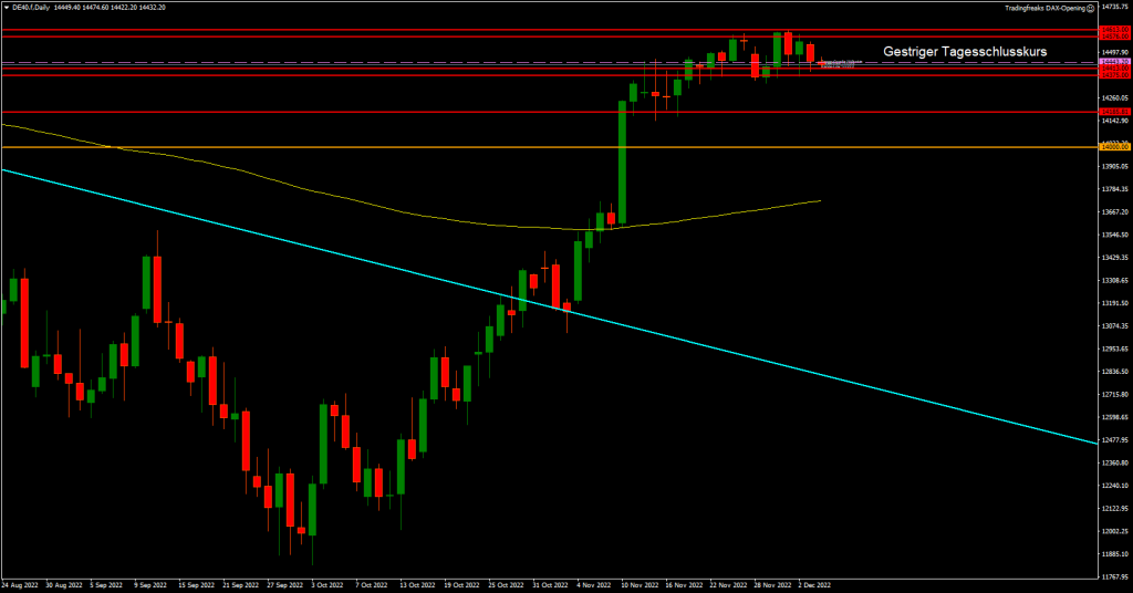 Widerstände nach oben: 14.450; 14.500; 14.550; 14.576; 14.600; 14.613