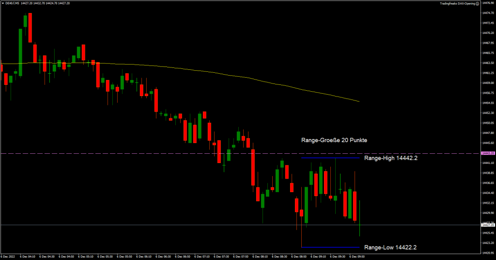 Die Handelsspanne im DAX beträgt in der letzten Stunde bislang 20 Punkte.