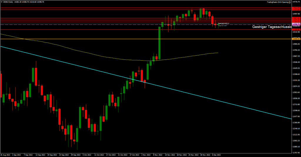 Unterstützungen nach unten: 14.250; 14.200; 14.185; 14.150; 14.100; 14.050; 14.000