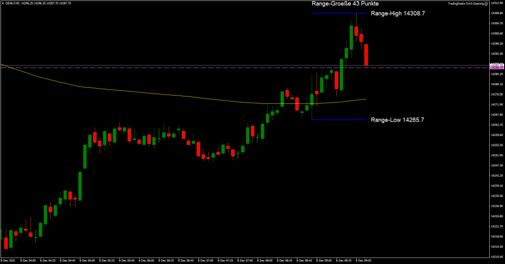 Die Handelsspanne im DAX beträgt in der letzten Stunde bislang 43 Punkte.