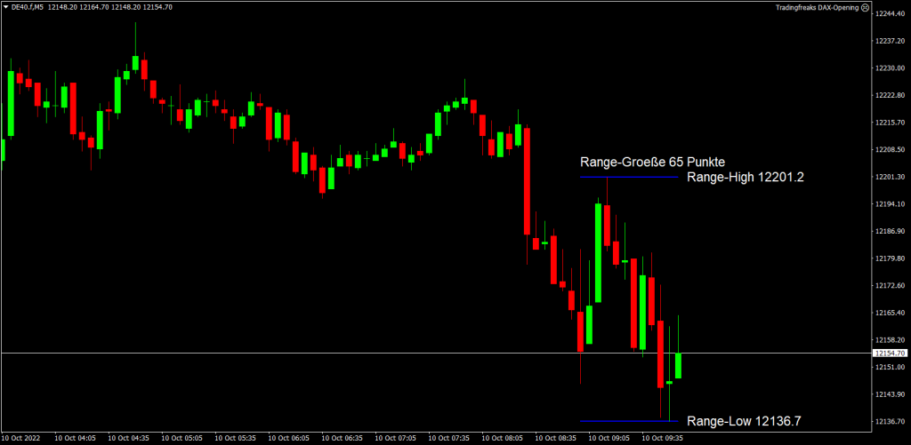 Die Handelsspanne im DAX beträgt in der letzten Stunde bislang 65 Punkte.