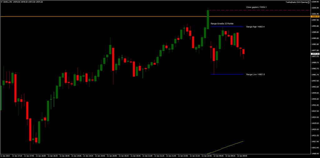 Die Handelsspanne im DAX beträgt in der letzten Stunde bislang 32 Punkte.
