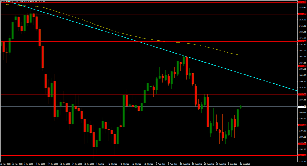 Unterstützungen nach unten: 13.100; 13.077; 13.000; 12.950; 12.900; 12.884