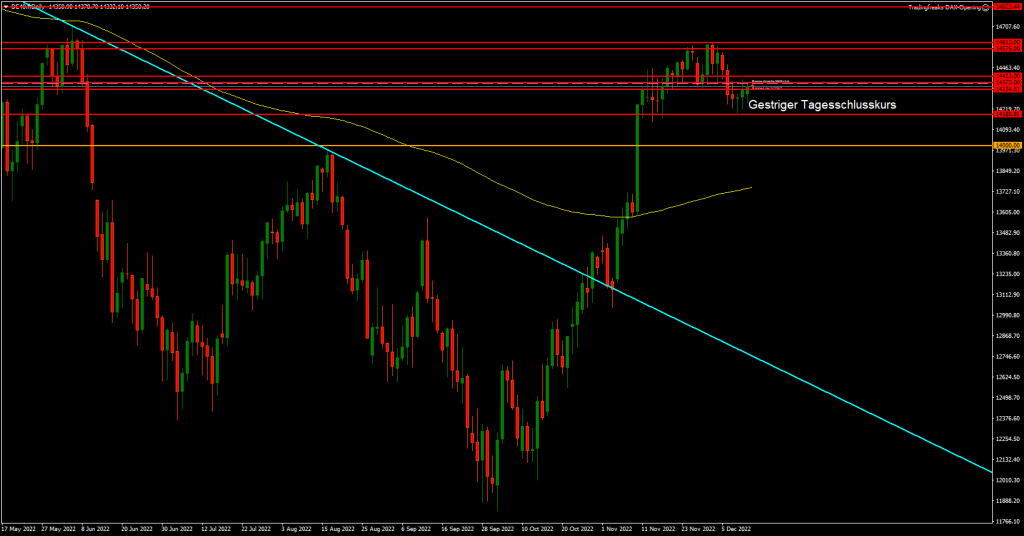 Unterstützungen nach unten: 14.300; 14.250; 14.200; 14.185; 14.150; 14.100; 14.050; 14.000