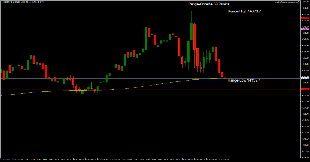 Die Handelsspanne im DAX beträgt in der letzten Stunde bislang 39 Punkte.