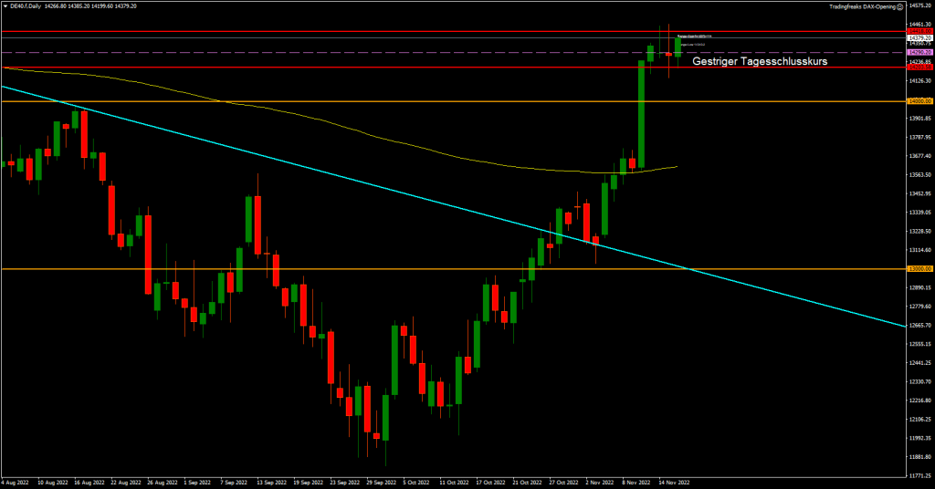 Unterstützungen nach unten: 14.300; 14.250; 14.203/00; 14.150; 14.100; 14.050; 14.000