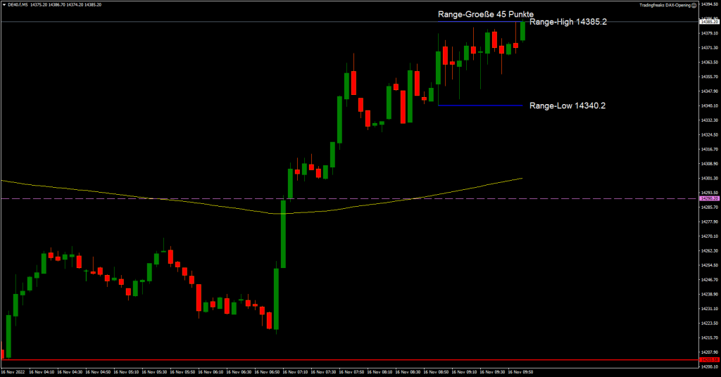 Die Handelsspanne im DAX beträgt in der letzten Stunde bislang 45 Punkte.
