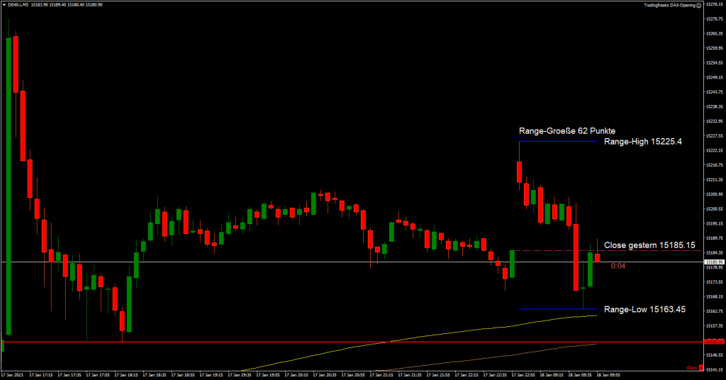 Die Handelsspanne im DAX beträgt in der letzten Stunde bislang 62 Punkte.