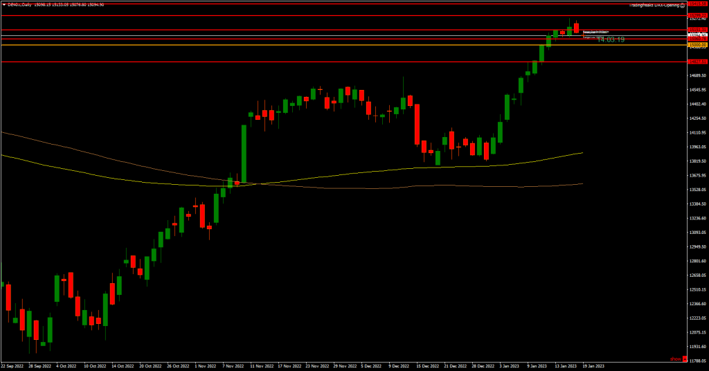 Unterstützungen nach unten: 15.050; 15.000; 14.950; 14.900; 14.850; 14.827