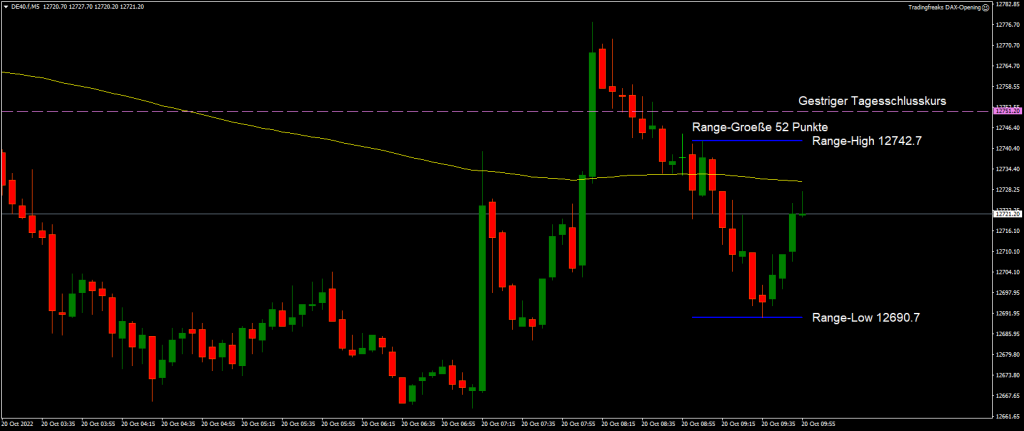 Die Handelsspanne im DAX beträgt in der letzten Stunde bislang 52 Punkte.