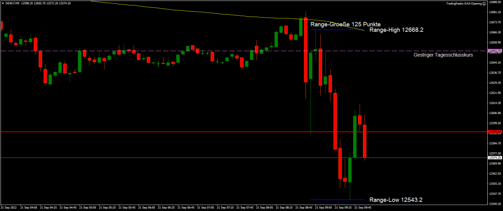 Die Handelsspanne im DAX beträgt in der letzten Stunde bislang 125 Punkte.