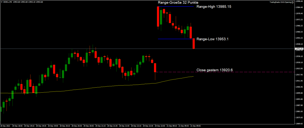 Unterstützungen nach unten: 13.900; 13.850; 13.800; 13.798; 13.750; 13.700