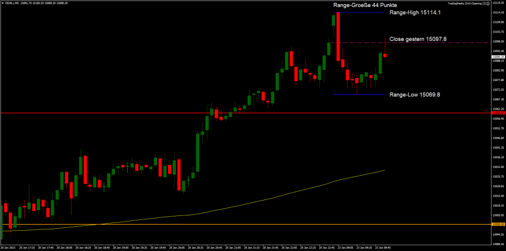 Die Handelsspanne im DAX beträgt in der letzten Stunde bislang 44 Punkte.