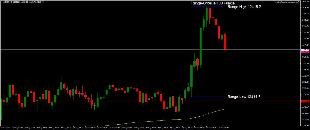 Die Handelsspanne im DAX beträgt in der letzten Stunde bislang 100 Punkte.