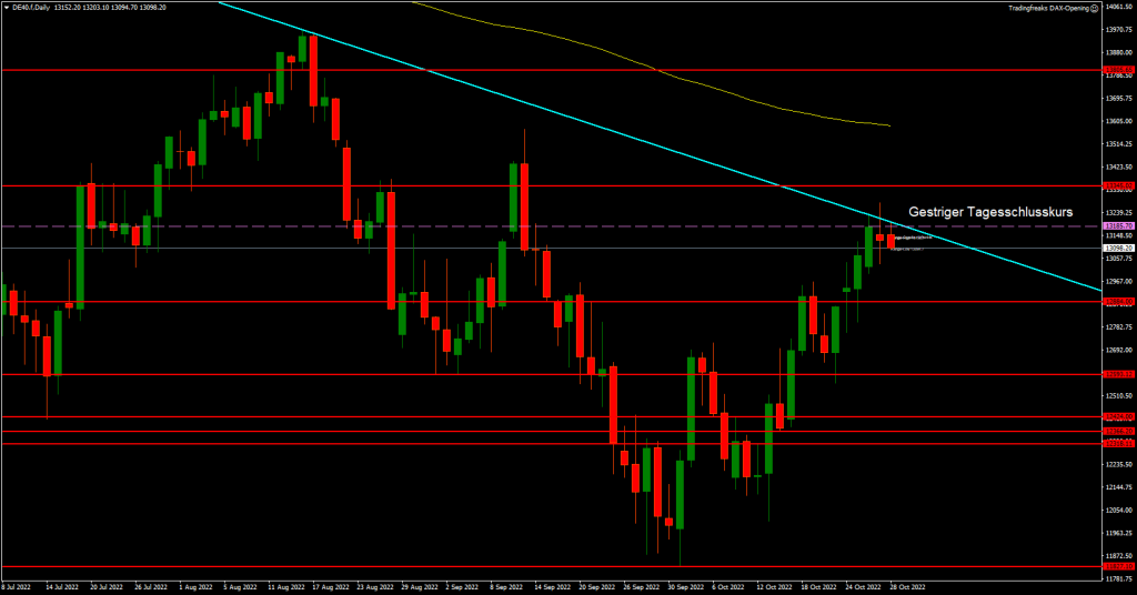 Widerstände nach oben: 13.150; 13.200; 13.220 (Trendlinie); 13.250; 13.300; 13.345; 13.350; 13.400