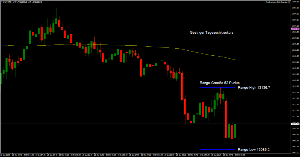 Die Handelsspanne im DAX beträgt in der letzten Stunde bislang 52 Punkte.
