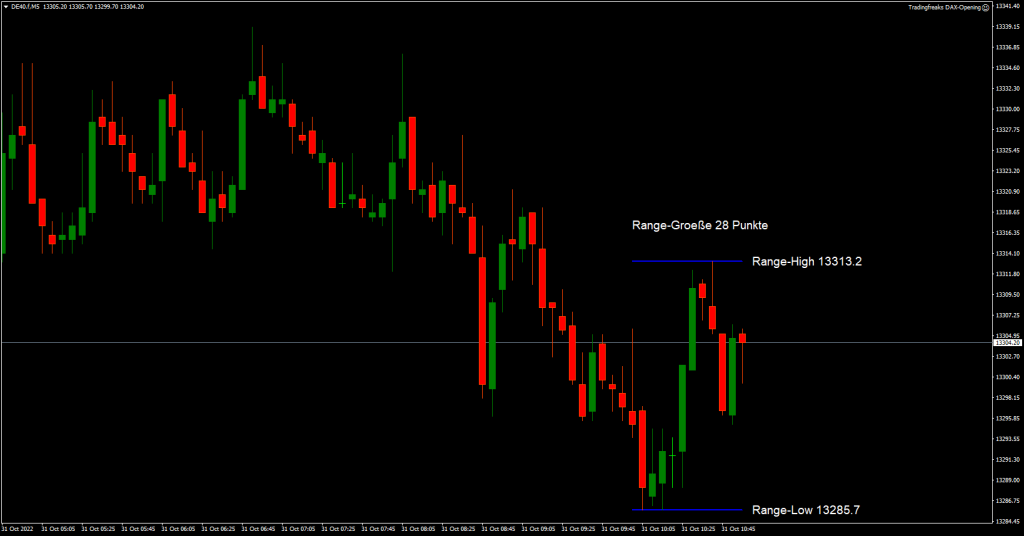 Die Handelsspanne im DAX beträgt in der letzten Stunde bislang 28 Punkte.