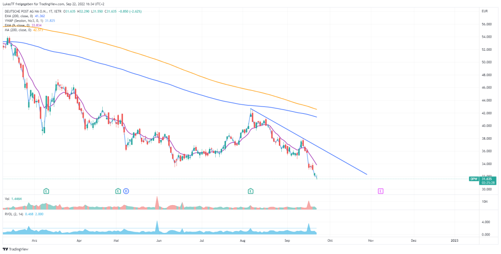 Dementsprechend wurde die Deutsche Post-Aktie von “Kaufen” auf “Neutral” abgestuft. Gleichzeitig wurde das Kursziel von 55€ auf 38€ gesenkt.