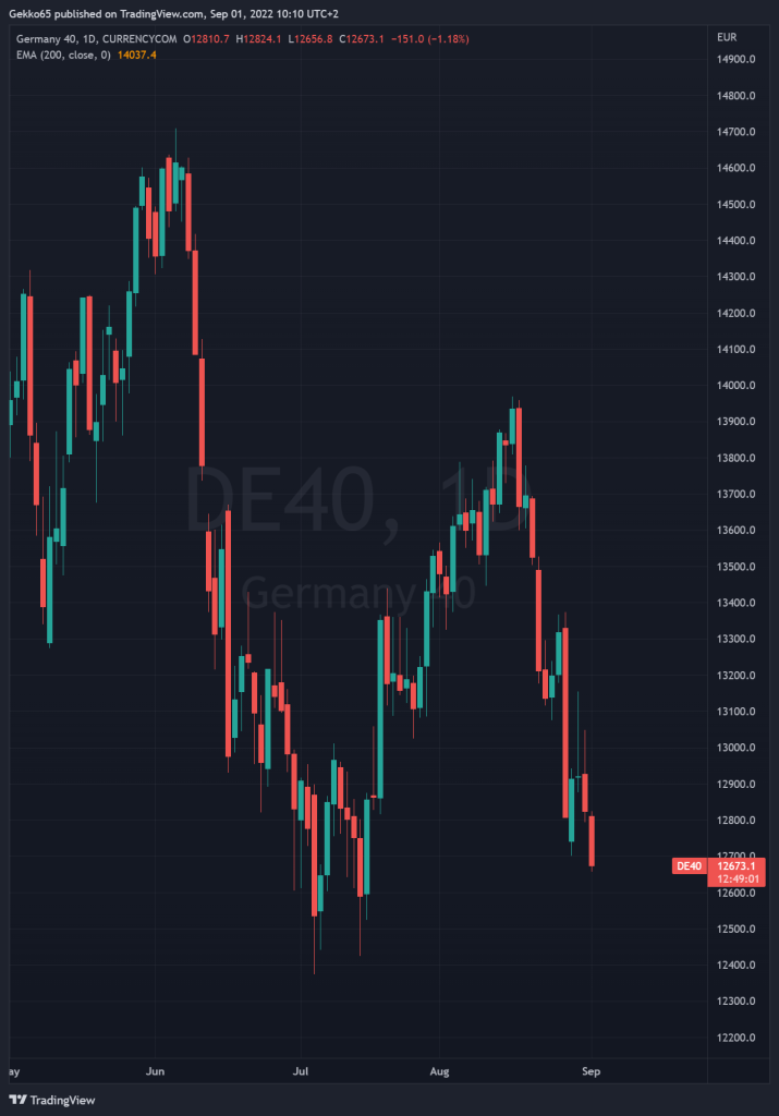 Der Dax notiert in der Folge auf dem niedrigsten Stand seit etwa 1,5 Monaten. Mal schauen ob wir die Tiefststände von Anfang Juli nochmal anlaufen werden in den kommenden Tagen.