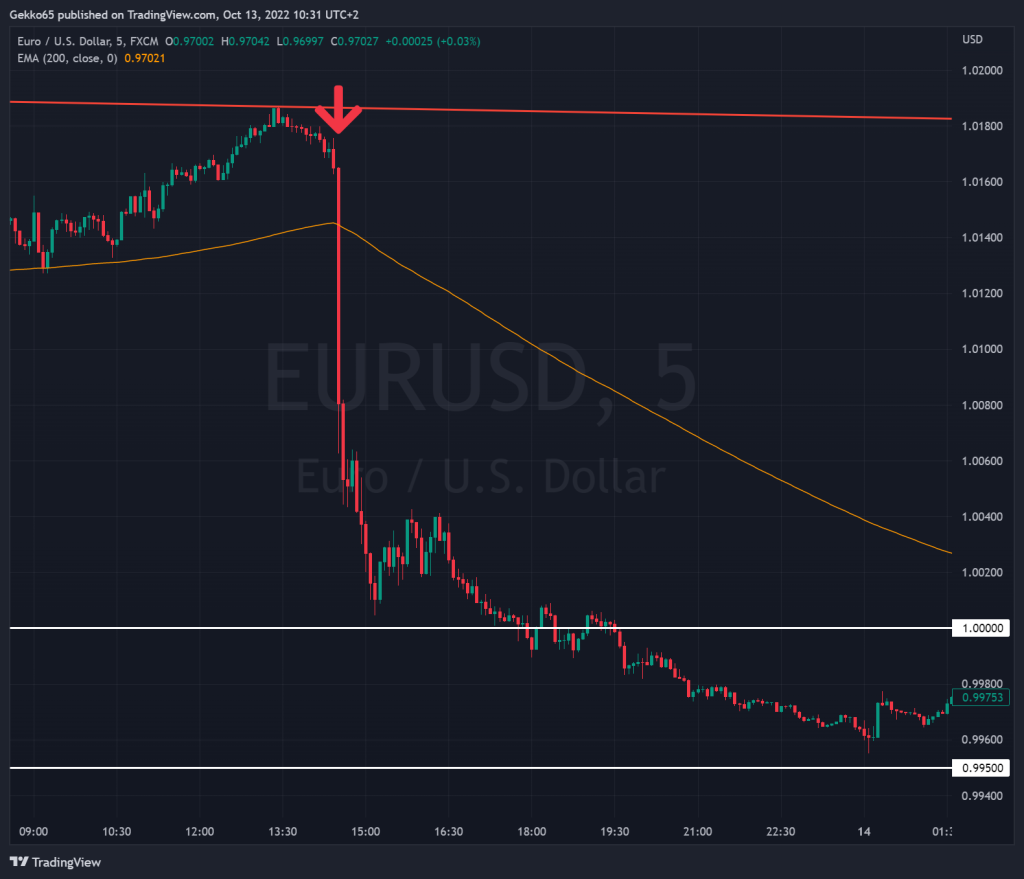 EUR/USD ist bei den letzten Daten am 13.09 bis in die Nacht um über 200 Pips gefallen.