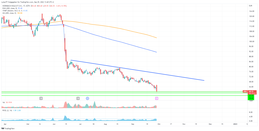 Nach unten hin könnte nun die runde Marke bei 60.00€ angelaufen werden. Danach rückt der Fokus auf die Unterstützungszonen bei 59.00 und bei 57.00€.
