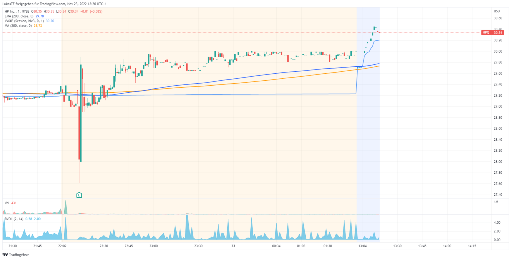 Trotz den eher durchwachsenen Quartalszahlen notiert die HP-Aktie vorbörslich aktuell bei +3,30%.