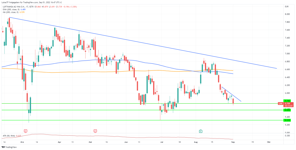 Die Aktie der deutschen Fluggesellschaft notierte heute zeitweise bei -2,9%. Aktuell stehen wir bei -2% auf Tagesbasis. Damit gehört sie zu den Verlieren im MDAX.