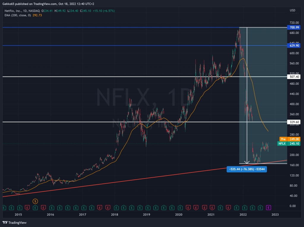 In der Spitze verlor das Unternehmen seit dem Hoch bei 700,99$ im November 2021 über 75%.