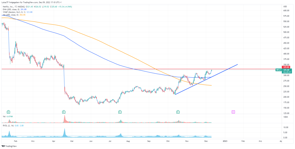 Ein weiterer Analyst der US-Investmentbank Cowen erhöhte das Kursziel von $340 auf $405 und nannte Netflix die “Best Idea for 2023”.