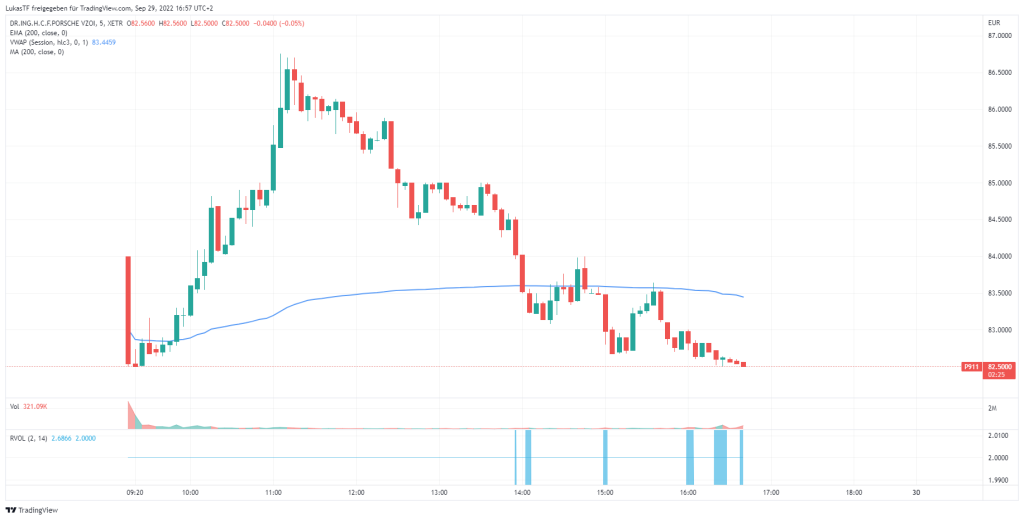 Auf Basis des ersten Preises erreichte Porsche eine Marktkapitalisierung von rund 76,5 Milliarden Euro.