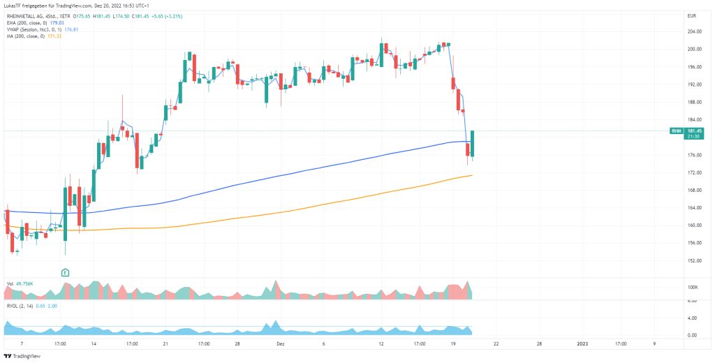 Die Aktie des deutschen Rüstungskonzerns gab heute erneut um rund 2% ab, nachdem es bereits gestern um fast 8% in die Tiefe ging.