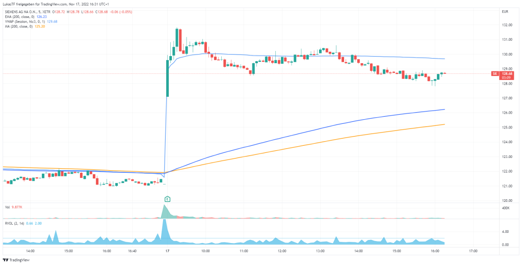Siemens-Aktie im 5-Minutenchart (M5)