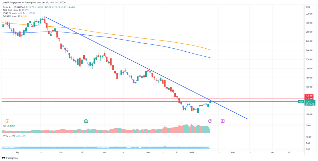 Nachdem die Tesla-Aktie in den letzten Wochen ordentlich unter Druck geraten ist, konnte sie in den letzten Handelstagen zu einer Erholungsrallye ansetzen und notiert heute erneut rund 5% höher.