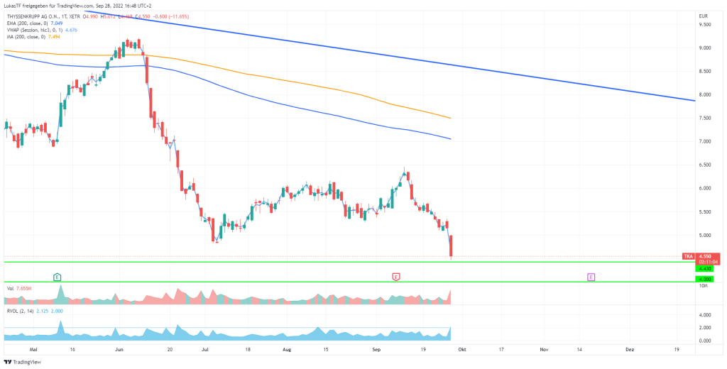 Aus charttechnischer Sicht könnten nun die Unterstützungszonen bei 4,43€ und bei 4,00€ angelaufen werden.