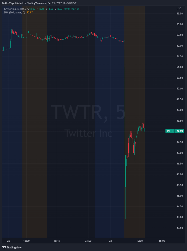 Die Aktien von Twitter notieren aktuell vorbörslich bei rund -9%, nachdem sie in der Spitze ca. 16% eingebrochen waren.