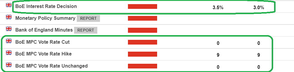 Die Abstimmung zu höheren Zinsen sollte, wie im Kalender zu sehen, mit 9-0 einstimmig ausfallen.