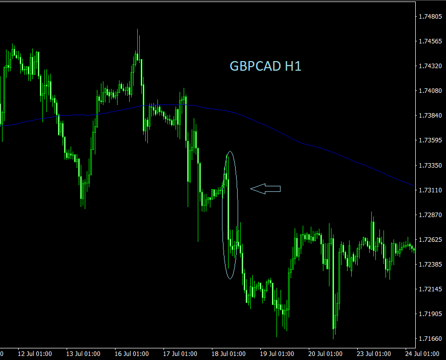 Der GBPCAD (stellvertretend für weitere GBP-Paare) fiel in der ersten Stunde nach Veröffentlichung verfehlter Inflationsdaten um ca 100p. und verstärkte den Abwärtstrend.