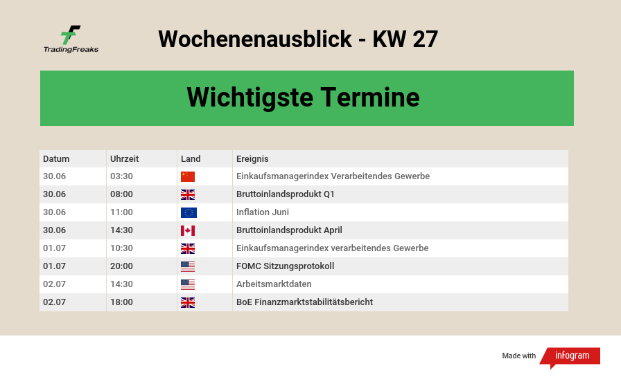 USD: In den USA ist die Lage weiterhin angespannt, da die Zahl der Covid-19 Infizierten deutlich ansteigt. In Texas wurden als Reaktion die Restriktionen wieder angehoben. Hier sind seit Freitag Bars geschlossen und Restaurants dürfen maximal 50% ihrer Kapazitäten nutzen. Dies sorgt für zusätzliche Unsicherheit und der Furcht vor einer zweiten Infektionswelle. Der USD wird in solchen Zeiten als sichere Währung nachgefragt und dient als sicherer Hafen. Am Dienstag gab es noch einen Aufreger wegen eines Handelsberaters von Trump. Pete Navarro wurde von Fox interviewt und sagte, dass das Handelsabkommen mit China vorbei sei. Der Markt hat direkt negativ auf diese Meldung reagiert und nach kurzer Zeit dementierten mehrere Politiker, darunter auch Trump selbst, diese Aussage. Unsere Einschätzung zum USD: neutral