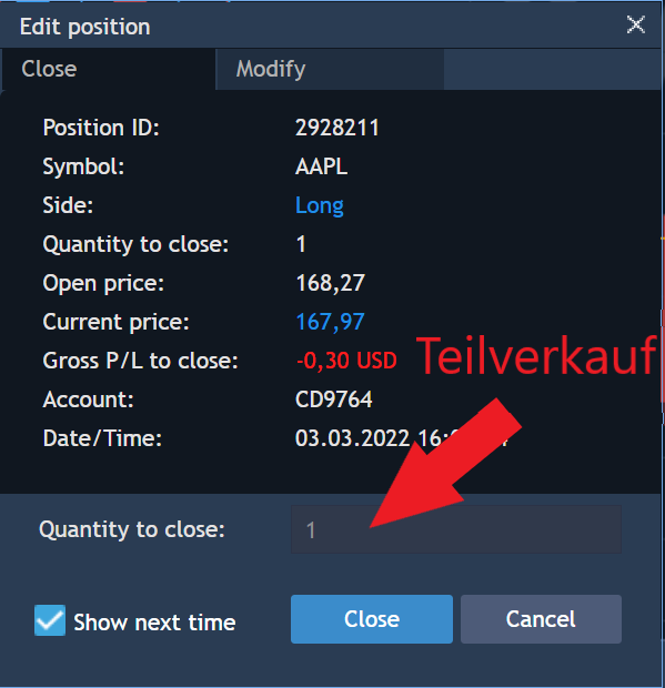 Darüber Hinaus ist es möglich, einen Teilverkauf auszuführen.