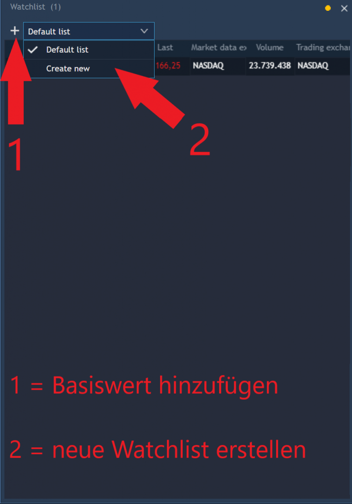 Mit einem einfachen Linksklick auf den Basiswert, wird dieser in deine Watchlist hinzugefügt.